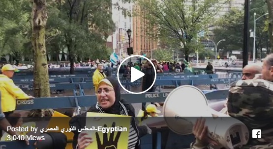 نظَّم عدد من أبناء الجالية المصرية في الولايات المتحدة الأمريكية فعالية حاشدة؛ رفضًا لزيارة قائد الانقلاب العسكري عبد الفتاح السيسي والسماح له بإلقاء كلمة بالأمم المتحدة. ورفع المشاركون ...