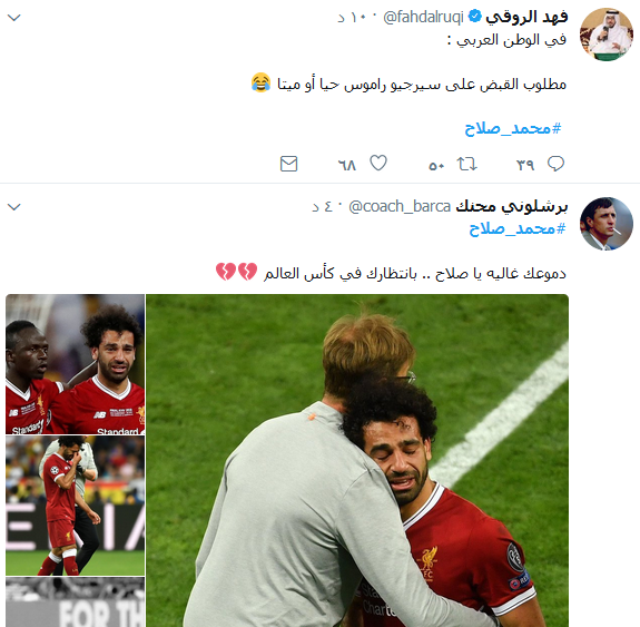 تصدَّرت هاشتاجات “#محمد_صلاح”، “#كلنا_ليفربول”، قائمة الهاشتاجات الأكثر تداولا عبر موقع “تويتر”، تضامنًا مع “صلاح” بعد إصابته المتعمدة على يد لاعب ريال مدريد “سيرغو راموس، في الشوط الأول من ...