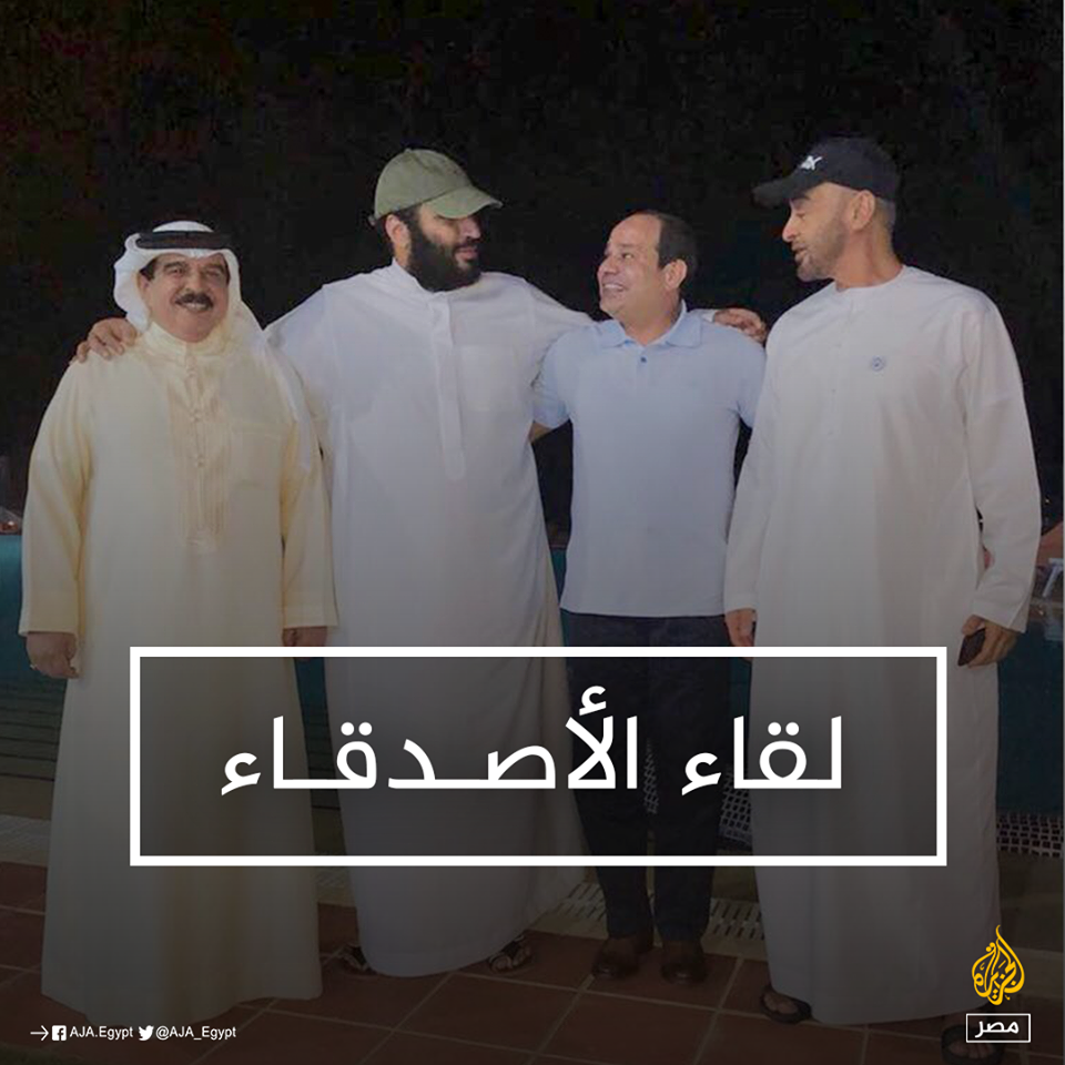 أثارت الصورة التي نشرها مدير مكتب ولي العهد السعودي محمد بن سلمان، والتي تجمعه بمحمد بن زايد وملك البحرين وقائد الانقلاب عبد الفتاح السيسي بالقاهرة، منذ أيام، سخرية ...