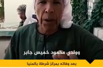 وثق المواطن خميس جابر شهادته حول قتل ضابط شرطة لنجله خلال تعذيبه بالكهرباء داخل مركز شرطة دلجا بالمنيا. وقال المواطن خلال الفيديو الذى تداوله رواد موقع التواصل الاجتماعى ...