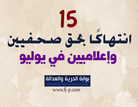 أصدر المرصد المصري للصحافة والإعلام تقريره الشهري الإحصائي للحريات الصحفية، رصد من خلاله ١5 انتهاكًا بحق صحفيين وإعلاميين خلال يوليو الماضي. موضحا أن كافة الوقائع التي لحقت بالصحفيين ...