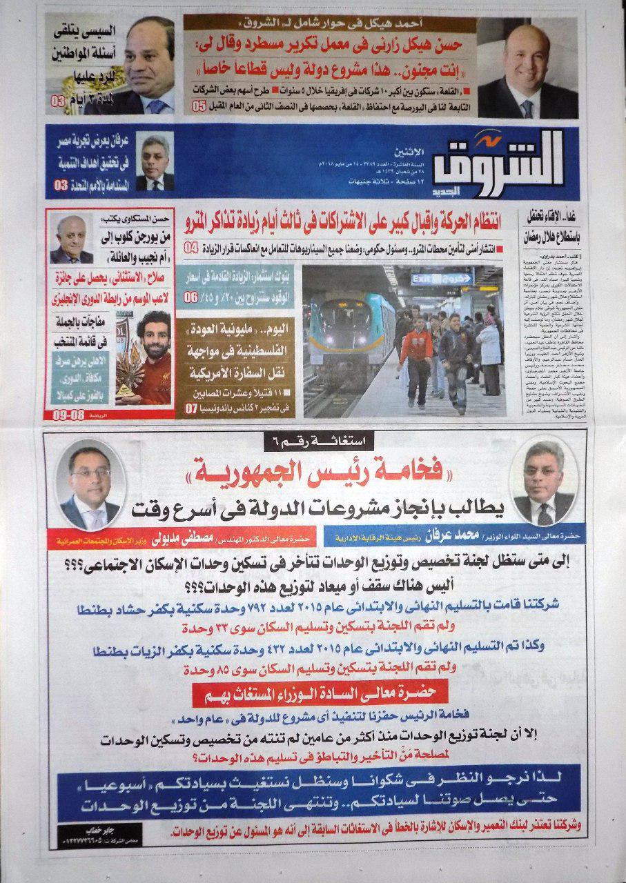 أبرزت صحف العسكر الصادرة الإثنين، نقل الولايات المتحدة الأمريكية سفارتها اليوم إلى القدس، وسط أجواء متوترة واستعدادات كبيرة من جانب الفلسطينيين للمشاركة في مليونية “العودة” ردا على إجرام ...
