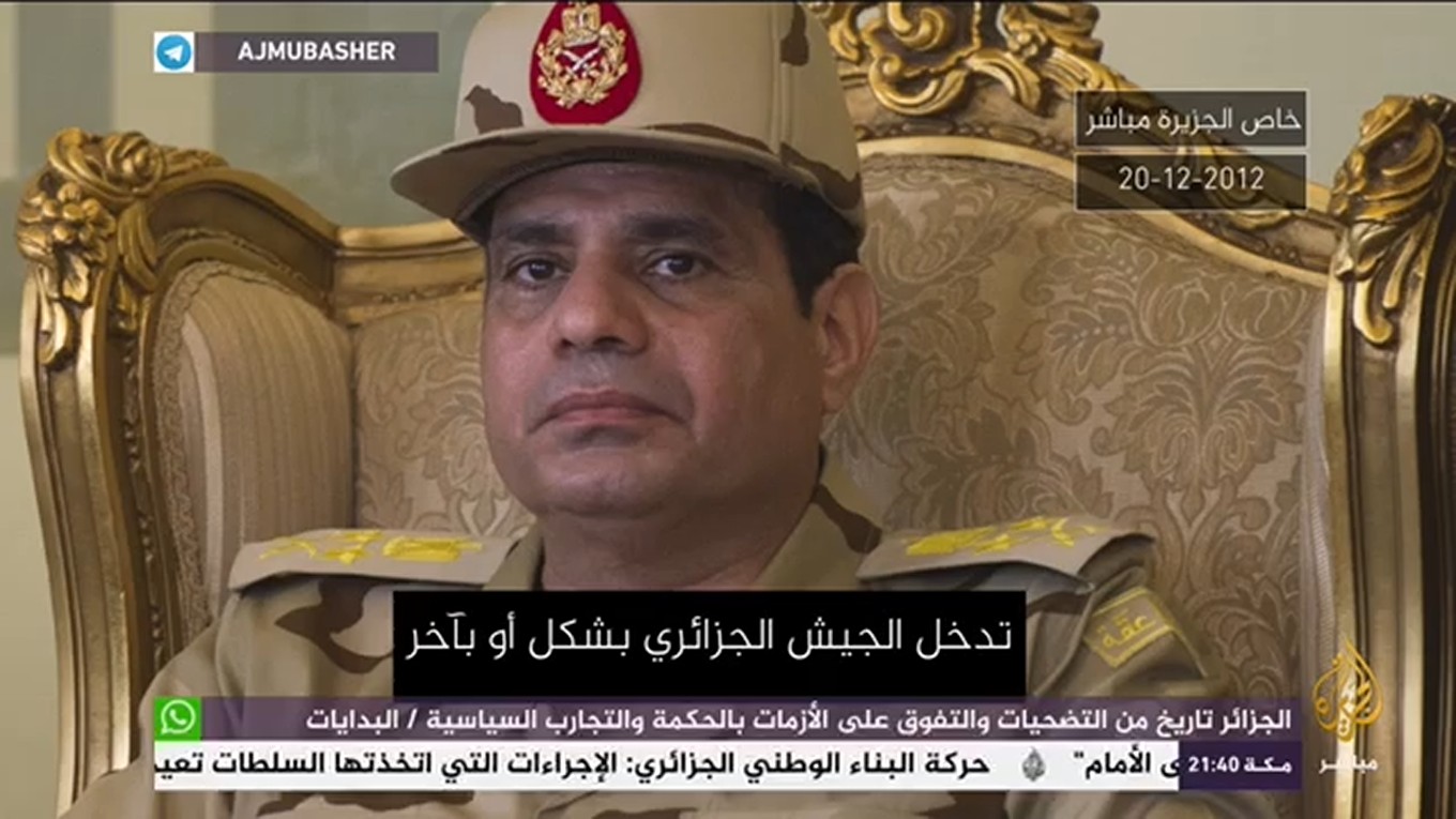 حصلت قناة “الجزيرة مباشر” على تسريب جديد لقائد الانقلاب العسكري عبدالفتاح السيسي، وقت أن كان يشغل منصب وزير الدفاع، يحذر فيه من خطورة تدخل الجيش في الحياة السياسية. ...