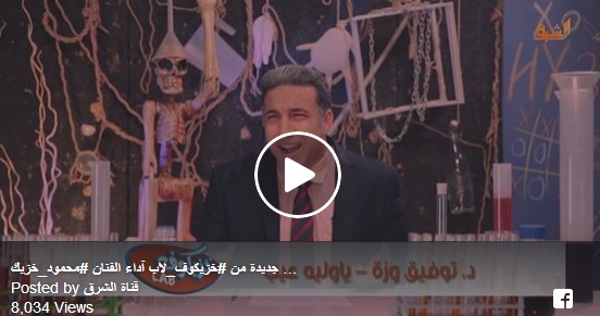 بثَّت قناة الشرق حلقة جديدة من برنامج “خزبكوف_لاب”، بعنوان “د.توفيق وزة – يا وليه عيب”، من أداء الفنان محمود خزبك. وجسَّد خزبك، خلال الحلقة، شخصية الإعلامي توفيق عكاشة، ...