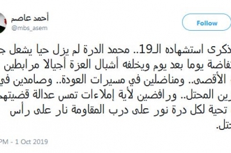 أشادت جماعة الإخوان المسلمين بصمود الفلسطينيين في وجه الاحتلال الصهيوني، مؤكدة أن محمد الدرة لا يزال حيا يشعل جذور الانتفاضة يوما بعد يوم ويخلفه أشباب العزة أجيالا مرابطين ...