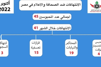 التعليقات على 41 انتهاكا لحرية الإعلام والصحافة خلال أكتوبر واستمرار حبس 45 صحفيا وإعلاميا مغلقة