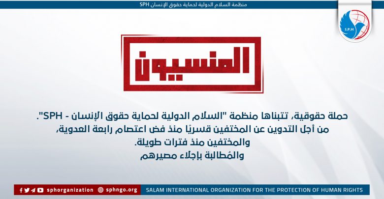 أطلقت منظمة “السلام الدولية لحماية حقوق الإنسان – SPH” حملة للتدوين عن المختفين قسريًا منذ فض اعتصام رابعة العدوية، والذين مضى على اختفائهم فترات طويلة. وأعلنت المنظمة عبر ...