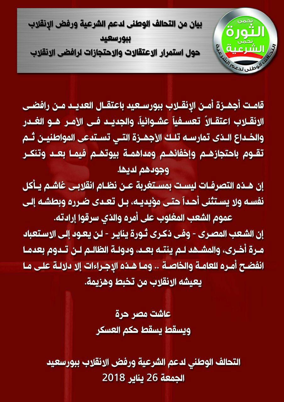 أكد التحالف الوطنى لدعم الشرعية أن ثورة يناير مع دخول عامها الثامن ورغم تعرضها لحملة قمع وتشويه من قوى الثورة المضادة إلا أنها ظلت صامدة، لم ترفع الراية ...