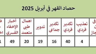 رصد مركز النديم لتأهيل ضحايا العنف والتعذيب 307 انتهاكات مختلفة في السجون ومقار الاحتجاز الرسمية تحت سلطة الانقلاب العسكرى خلال إبريل الماضى ، من ضمنها حالات قتل ...