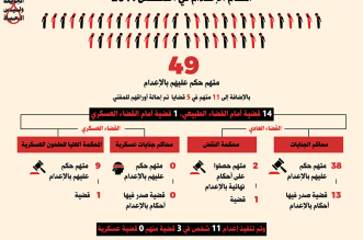 المبادرة المصرية توثق 49 حكمًا جائرًا بالإعدام وإحالة 11 آخرين خلال أغسطس الماضي