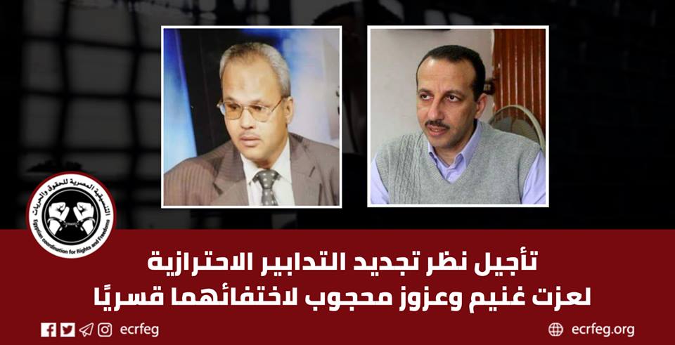 تأجيل نظر تجديد التدابير الاحترازية لـ”عزت غنيم وعزوز محجوب” لاختفائهما قسريًا