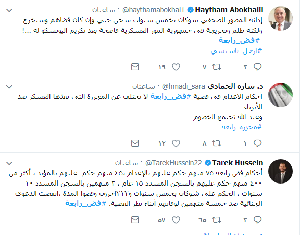 توالت ردود الأفعال المنددة بحكم قضاة العسكر اليوم بهزلية مذبحة فض اعتصام رابعة العدوية والتي وصفت بأنها جائرة وتفتقر لأدنى معايير التقاضي العادل حيث تحول الضحايا إلى جناه ...