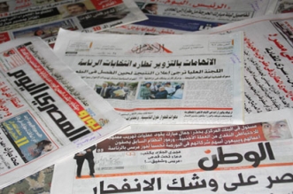 ليس في صحف العسكر الصادرة اليوم السبت شيئ يستحق الذكر أو له قيمة، فقد تحولت صحفه إلى نشرة داخلية للشئون المعنوية لا هم لها سوى تمجيد النظام والدعاية ...