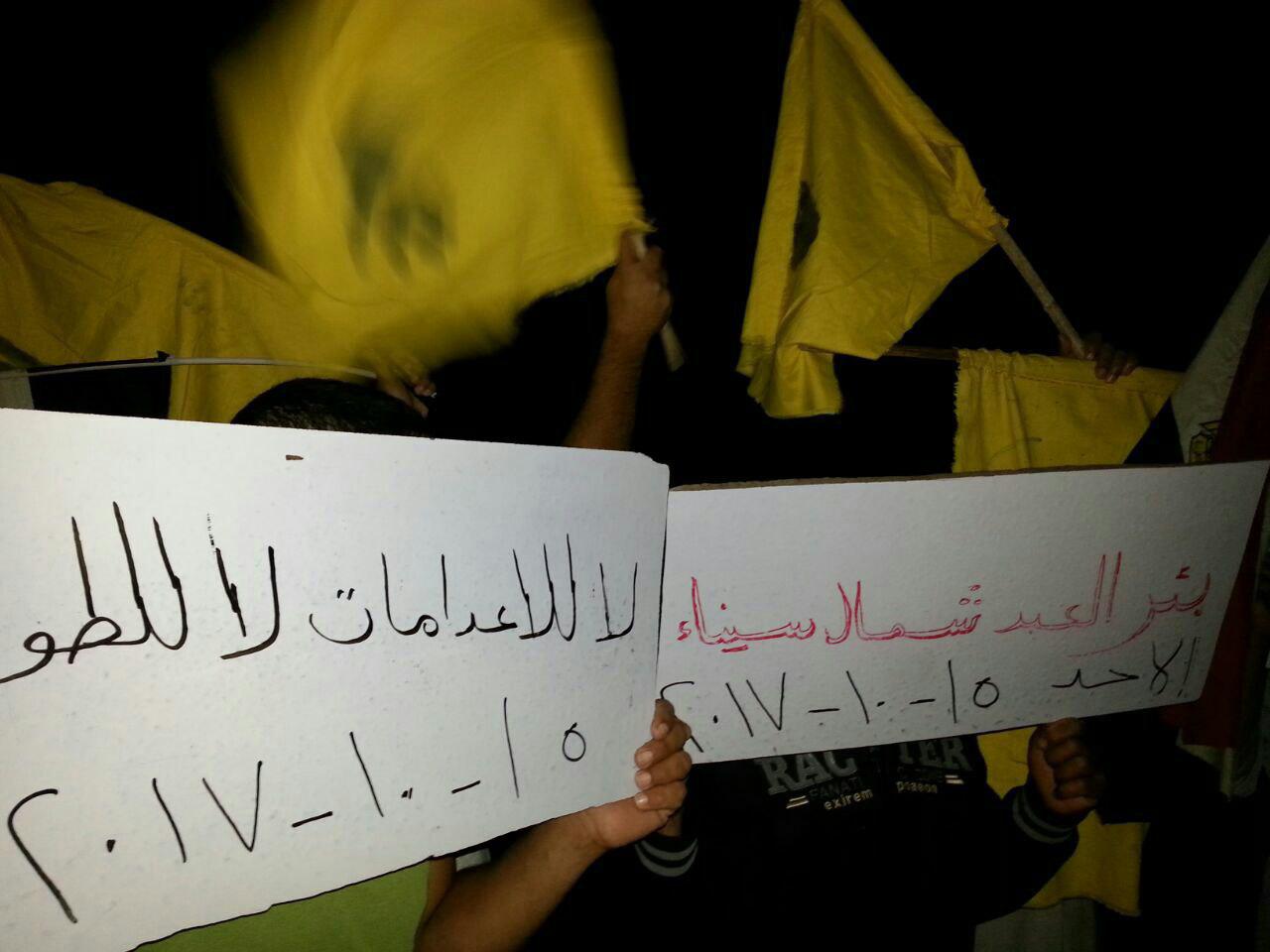 أحمدي البنهاوي نظم ثوار بئر العبد بشمال سيناء وقفة احتجاجية مسائية، ضمن فعالياتهم الرافضة لحكم العسكر في أسبوع "لا للإعدامات لا للطوارئ"؛ تنديدا بحكم العسكر وجرائمه بحق أهالي ...